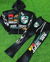 Уличная одежда по индивидуальному заказу, потертые нашивки с вышивкой и логотипом, хлопковый спортивный костюм с бриллиантами, негабаритный винтажный спортивный костюм